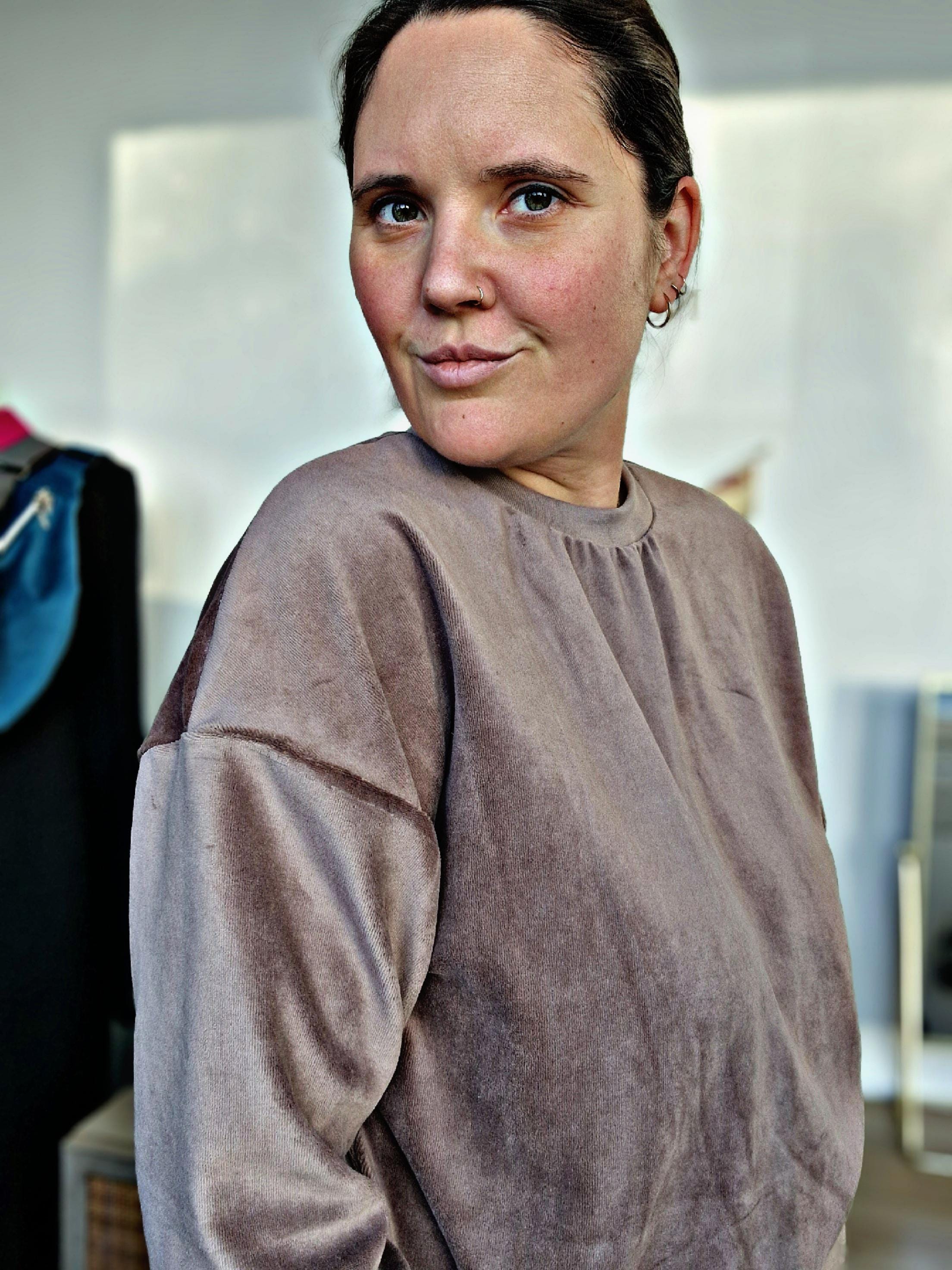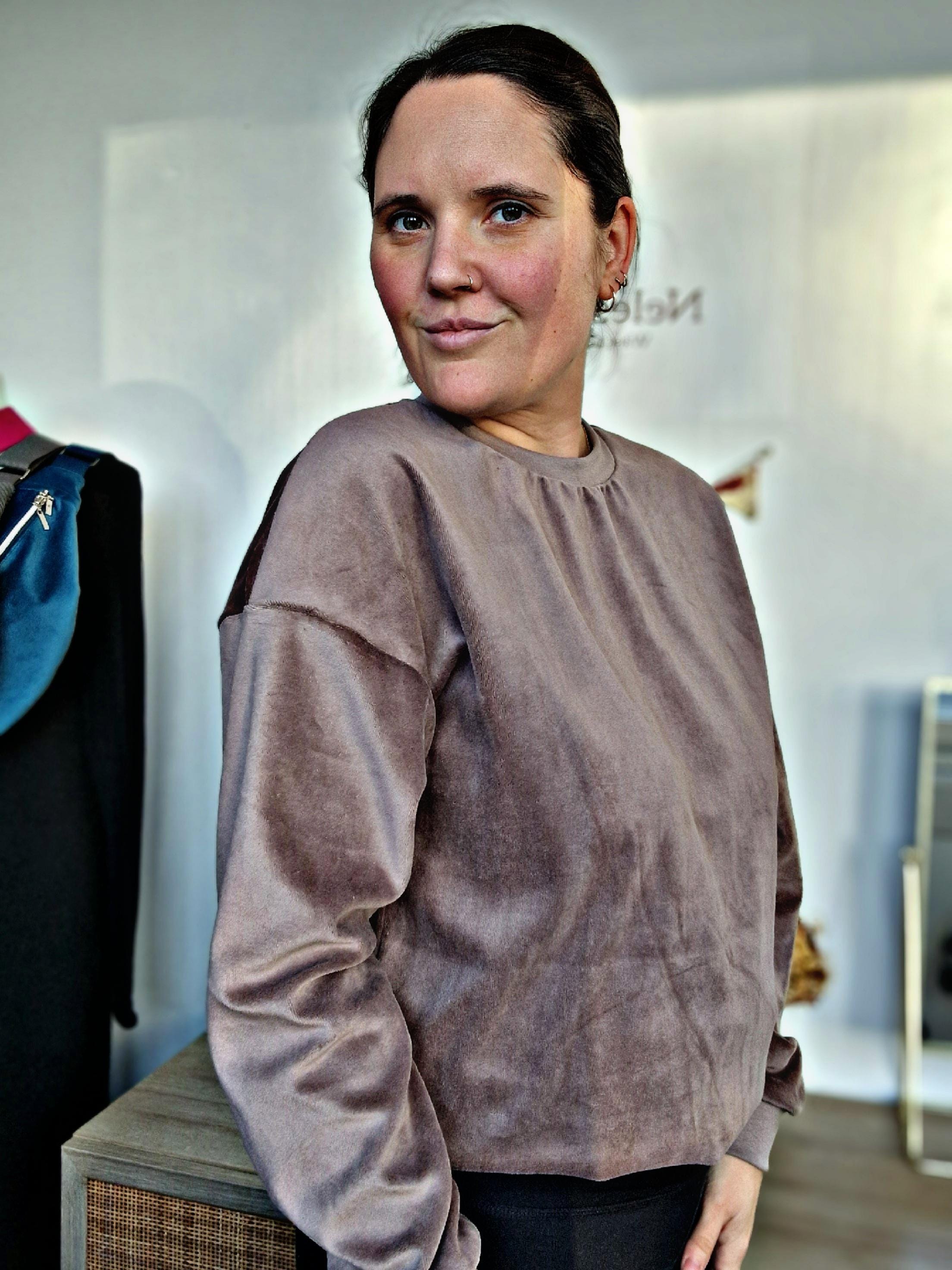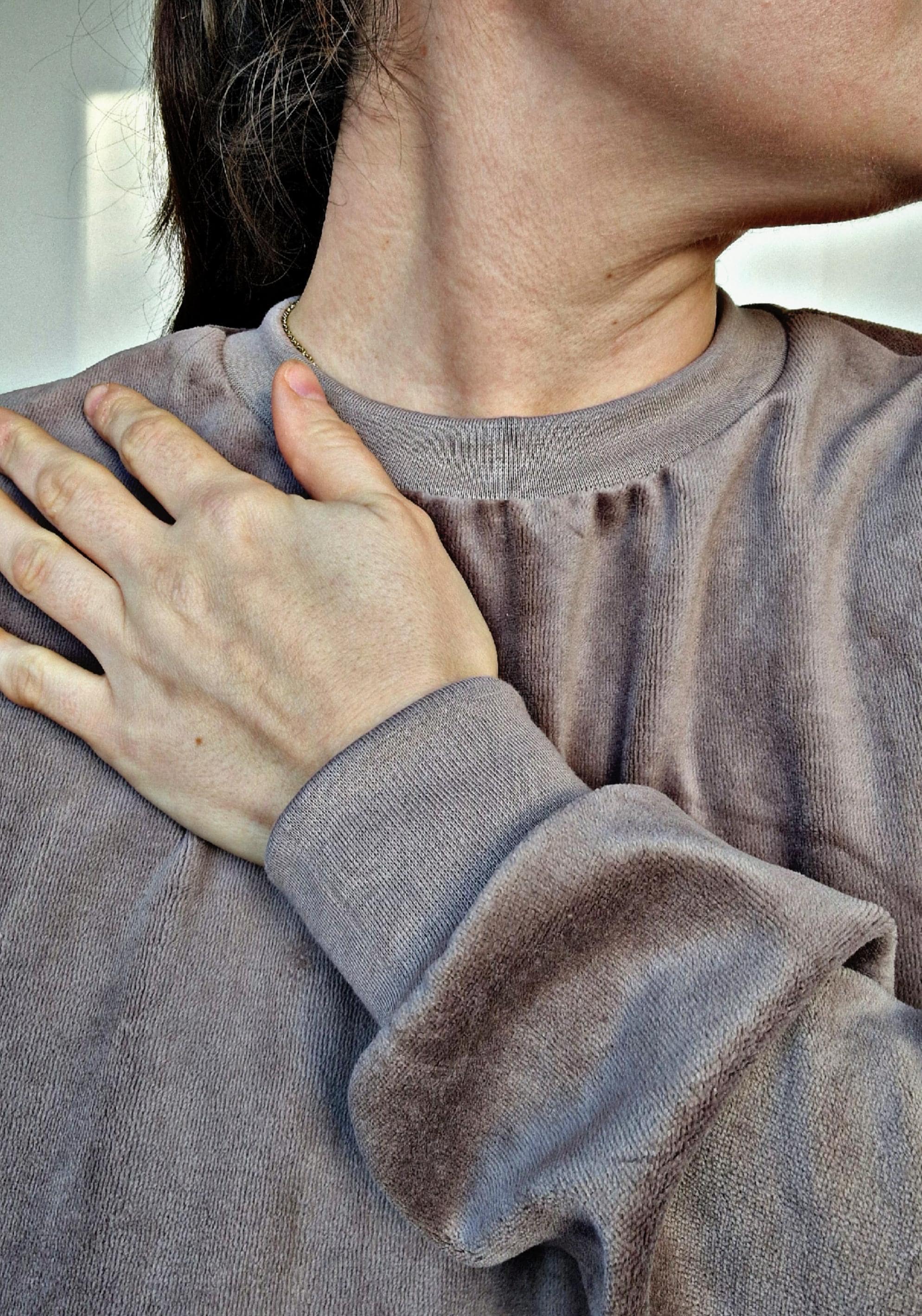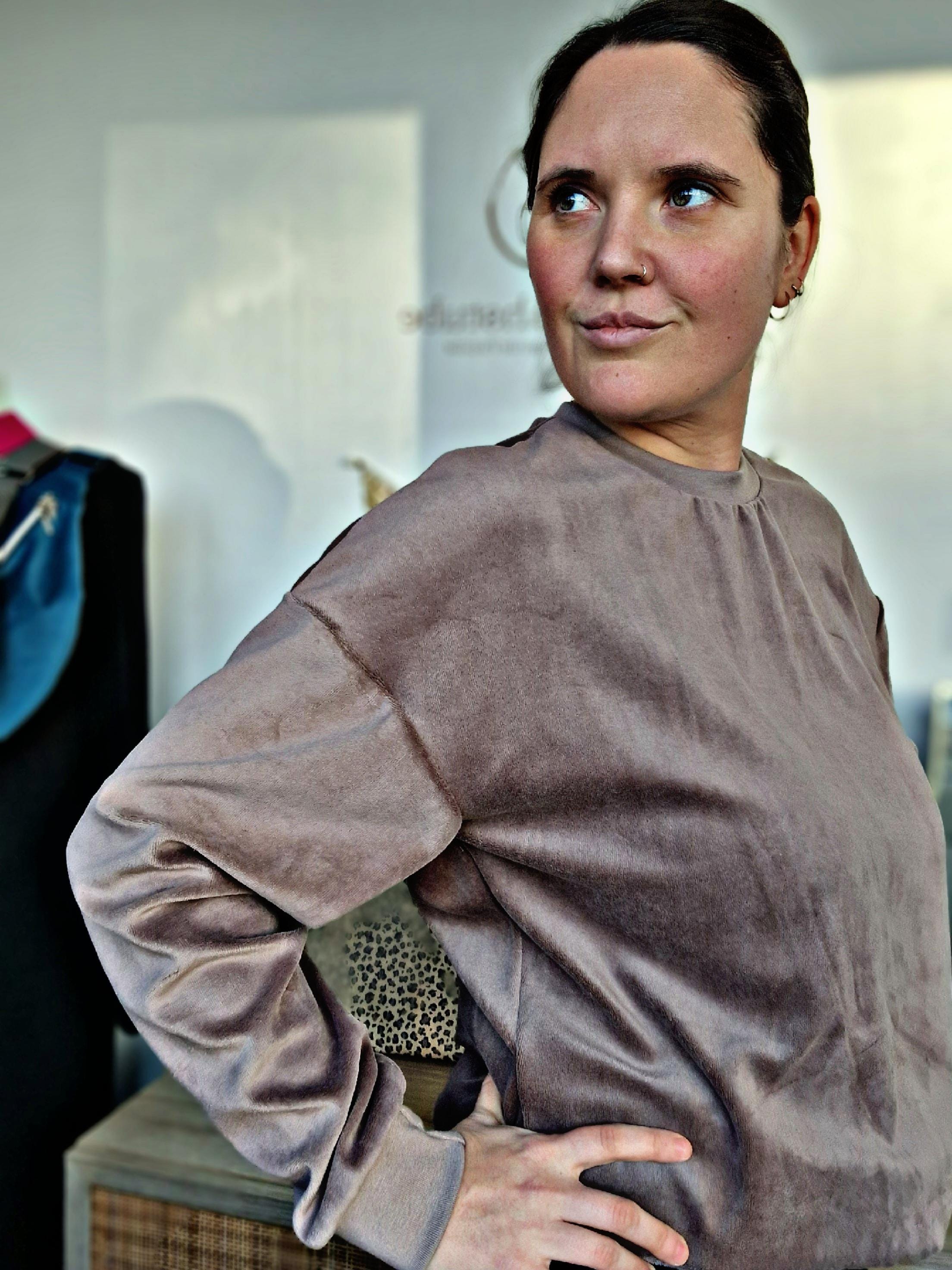 Cozy soft oversized sweater made of velour fabric.