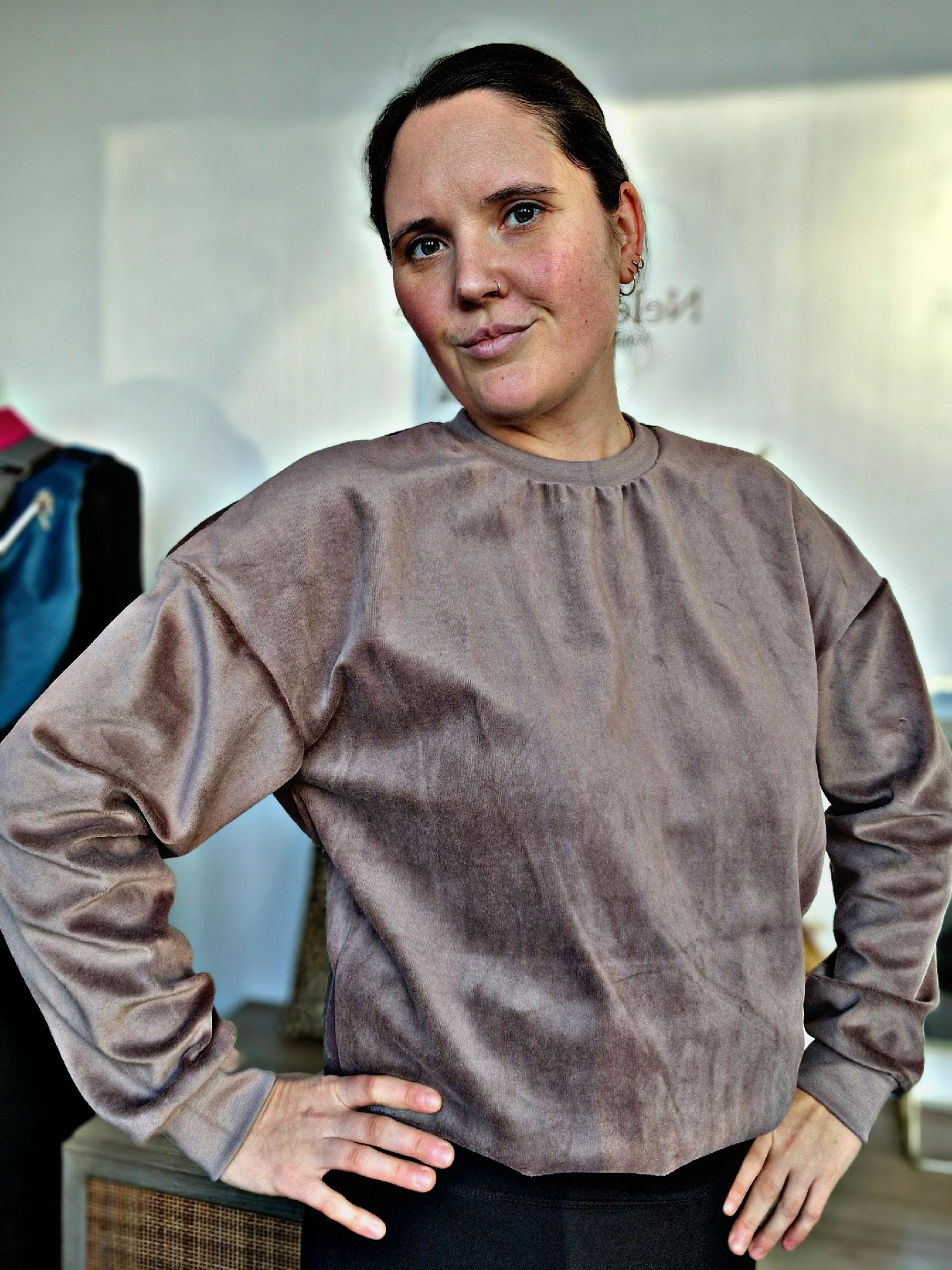 This relaxed-fit sweater is made from comfortable velour and its loose fit makes it easy to slip on. There's enough room for a warm base layer if needed, but this sweater is also the perfect companion on cool summer evenings.