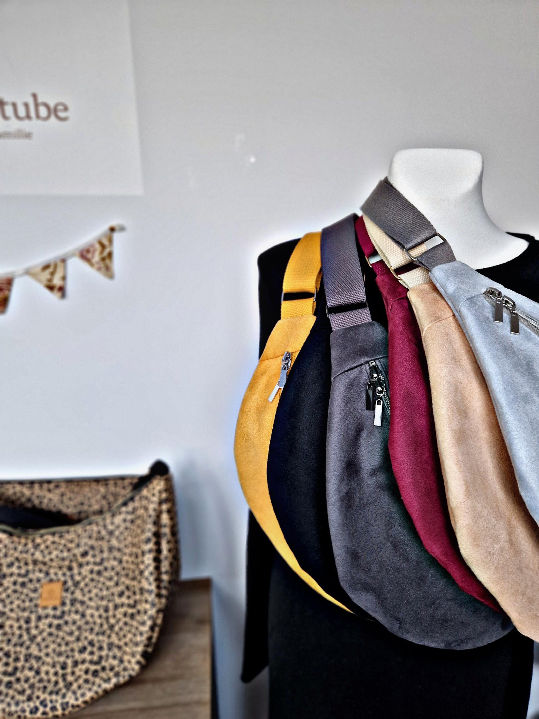 Extra-large fanny pack in pastel colors made of robust suede.