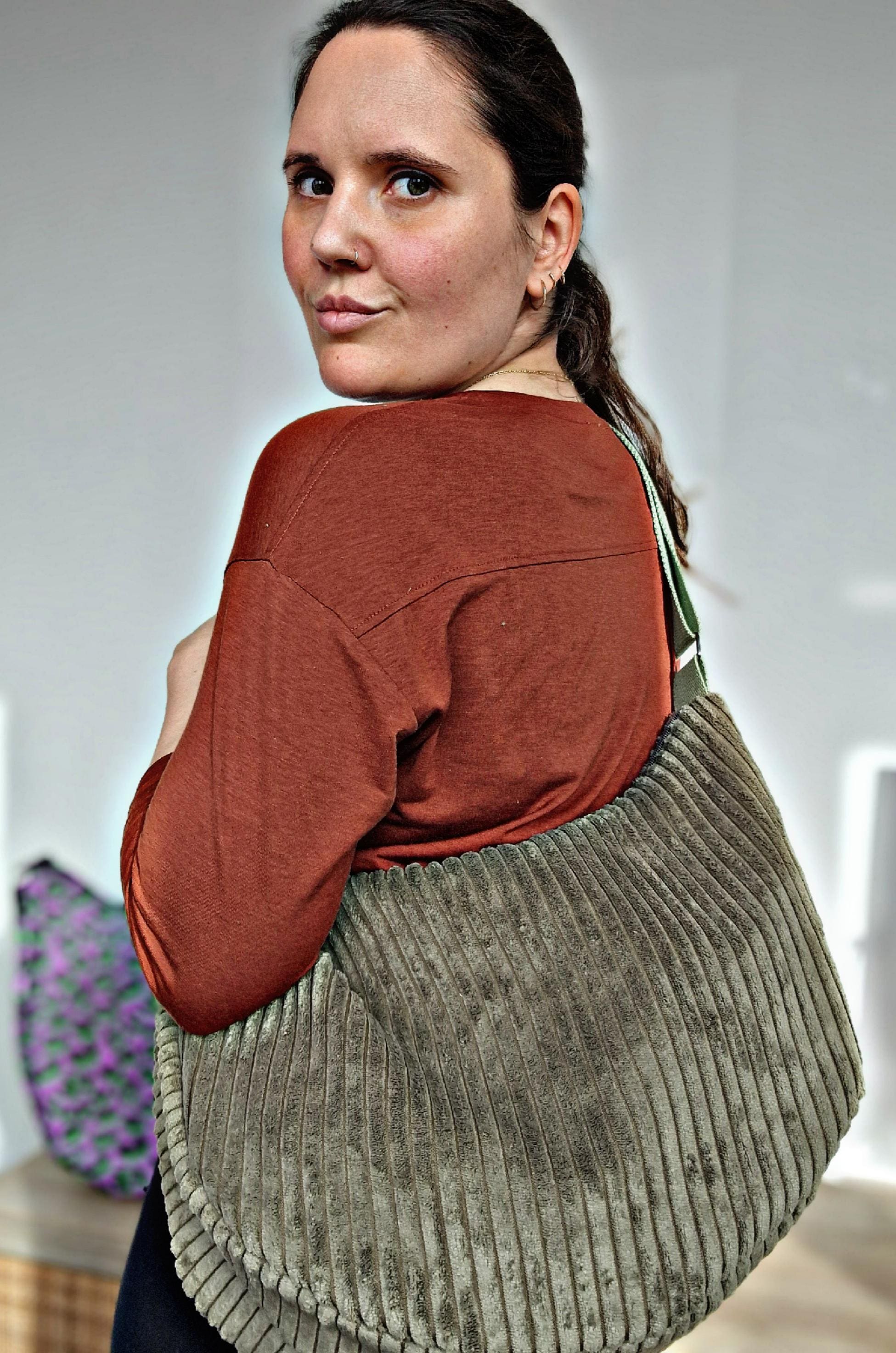 You already know and love my belt bags made of corduroy, suede, or mesh, but need a little more space in your new handbag? Then you've found what you're looking for with this cozy Moon Bag made of robust wide-wale corduroy used in furniture!