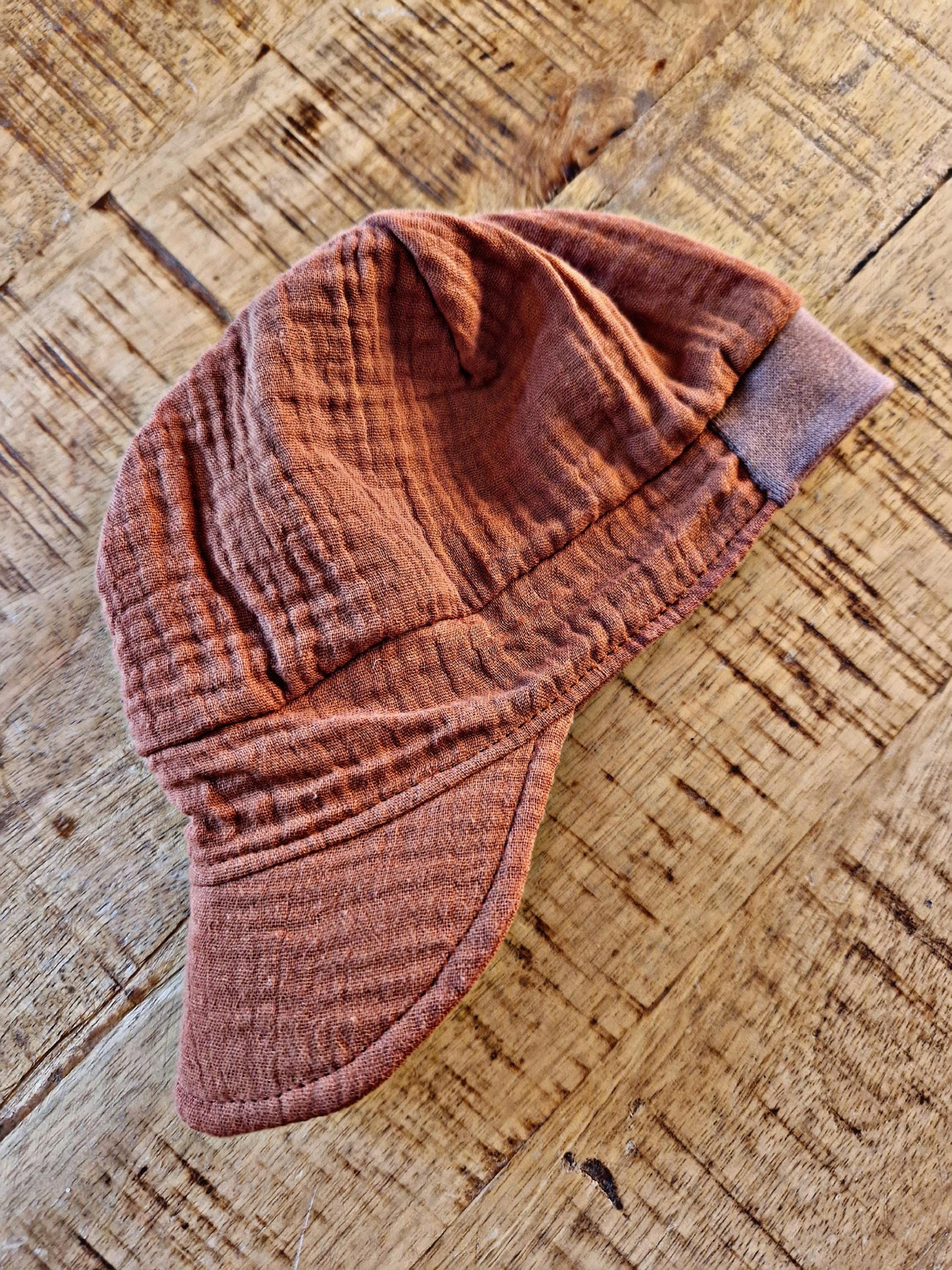 With this light and airy summer hat made of muslin, you're ready for the warm season and always well protected from the sun.